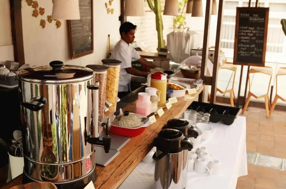 距兵器广场 10 分钟步行路程 酒店维护得很好,非常干净,床很舒服。 在屋顶享用丰盛的早餐,欣赏非凡的景色 自助水和古柯伴侣 工作人员非常热情,关心 凌晨 3 点出发去远足时,我们甚至还吃了点小吃。 我们对我们的住宿感到很高兴
